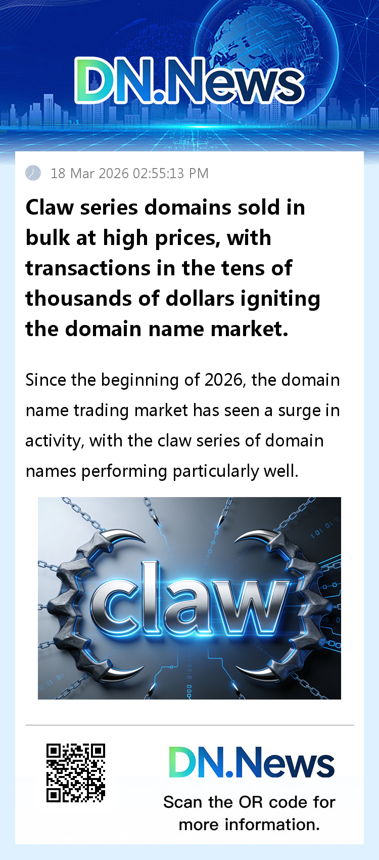 The high-priced transactions of numerous Claw series domain names not only provide domain investors with new investment opportunities but also highlight the long-term value of digital assets. With the continuous iteration of AI technology, end-user demand in sectors such as open-source ecosystems and AI tools will continue to grow, potentially further enhancing the value of Claw series domain names. In the future, domain names with clear application scenarios and high-quality characteristics in niche sectors may become new growth points in the domain name market. This surge in Claw series transactions undoubtedly injects new vitality into the industry and provides important reference for domain investment and end-user strategy.