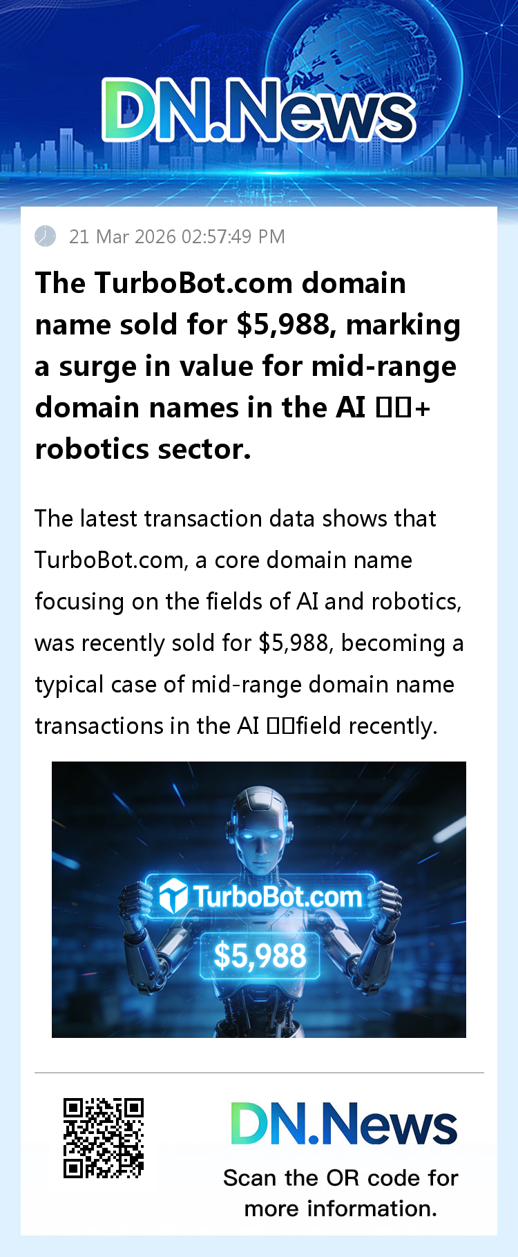 In short, the sale of TurboBot.com for $5,988 is not just an ordinary domain name transaction, but also reflects the rationality and trends in the current AI-driven domain name market. In today's rapidly developing digital asset landscape, the value of a high-quality domain name no longer depends solely on its price, but also on its relevance to the target market, its quality, and its practicality—choosing the right keywords, identifying the right market segment, and grasping the cost-effectiveness are crucial to seizing opportunities in domain investment and digital strategy, and achieving long-term value appreciation.