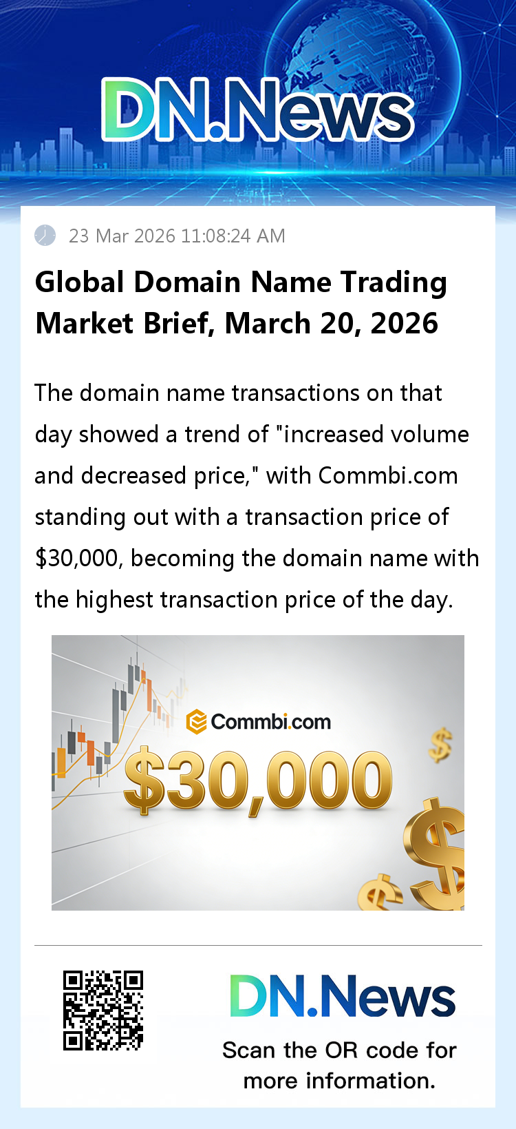 According to NameBio statistics, the domain name transactions on that day showed a clear trend of "increased volume and decreased price." Among them, the six-character English domain name Commbi.com stood out with a transaction price of $30,000, becoming the domain name with the highest transaction price on that day and leading the domain name transaction heat.