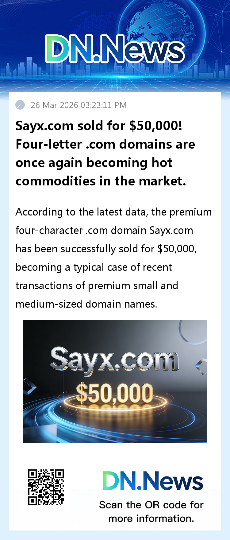 In summary, the $50,000 sale of Sayx.com is the result of the combined effect of four key factors: a high-quality suffix, concise characters, brand potential, and favorable market conditions. It not only confirms the commercial value of four-letter .com domains but also provides a clear value reference for domain investors and end-user businesses—it's not only generic word domains that are valuable; short, memorable, and highly adaptable pure-letter .com domains also possess extremely high market competitiveness.