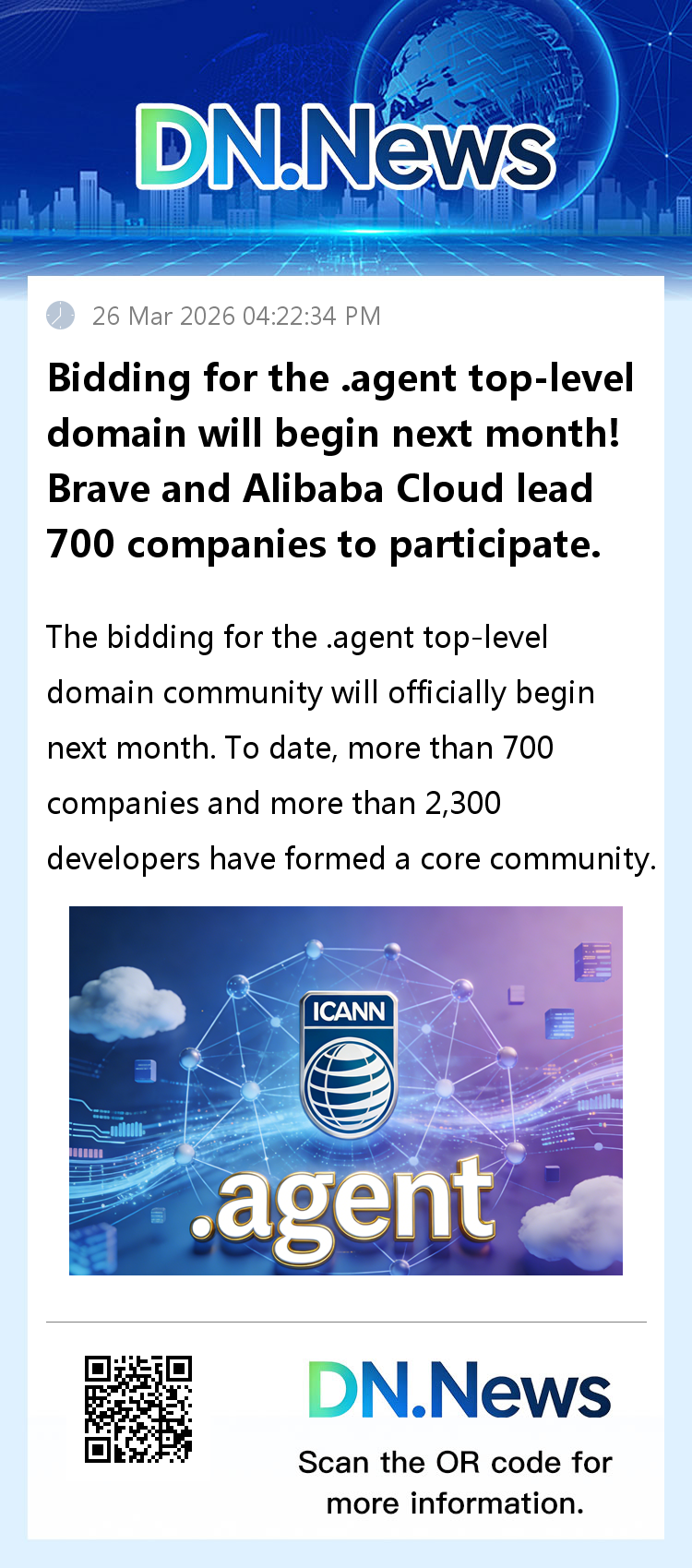 The domain name industry and the AI industry are both witnessing a major event – the bidding for the .agent top-level domain (gTLD) will officially begin next month. To date, over 700 companies and more than 2,300 developers have formed a core community to participate in this bidding for ICANN's new gTLD. Among them are privacy browser Brave, cloud computing giant Alibaba Cloud, and globally renowned technology companies such as Ollama, Datadog, and Netlify, making for an unprecedentedly strong lineup that has garnered significant industry attention. This bidding marks the official start of the competition for digital entry points in the AI Agent field and foreshadows a new round of restructuring in the top-level domain market.