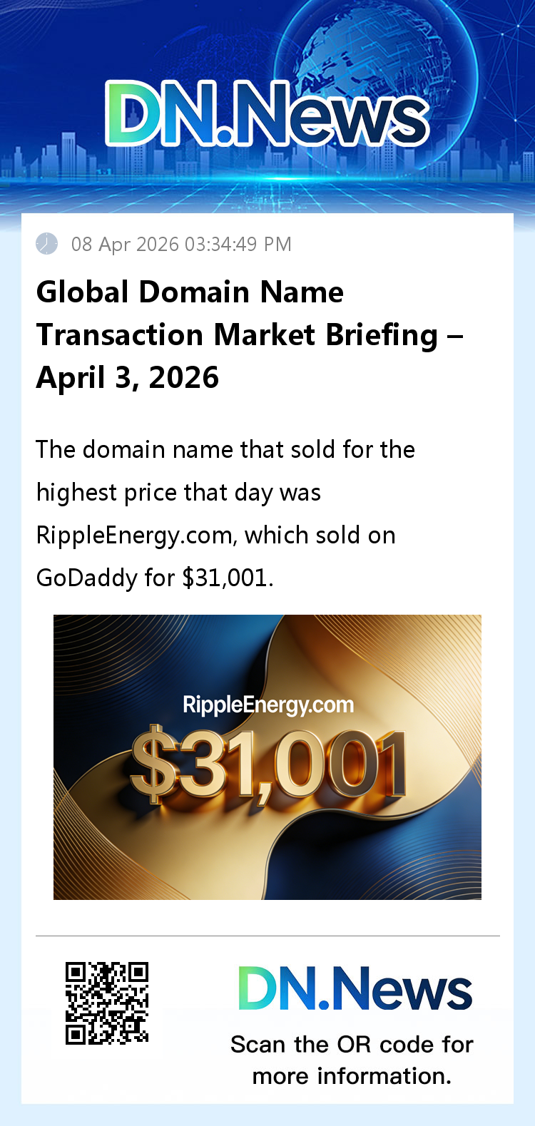 The sale of RippleEnergy.com for $31,001 was not only a standout performance in the market that day but also a powerful testament to the value of domain names in the green energy sector. Against the backdrop of an accelerating global energy transition, premium domain names like this—which align closely with hot sectors—will continue to be the focus of market attention, and their value will become even more prominent.